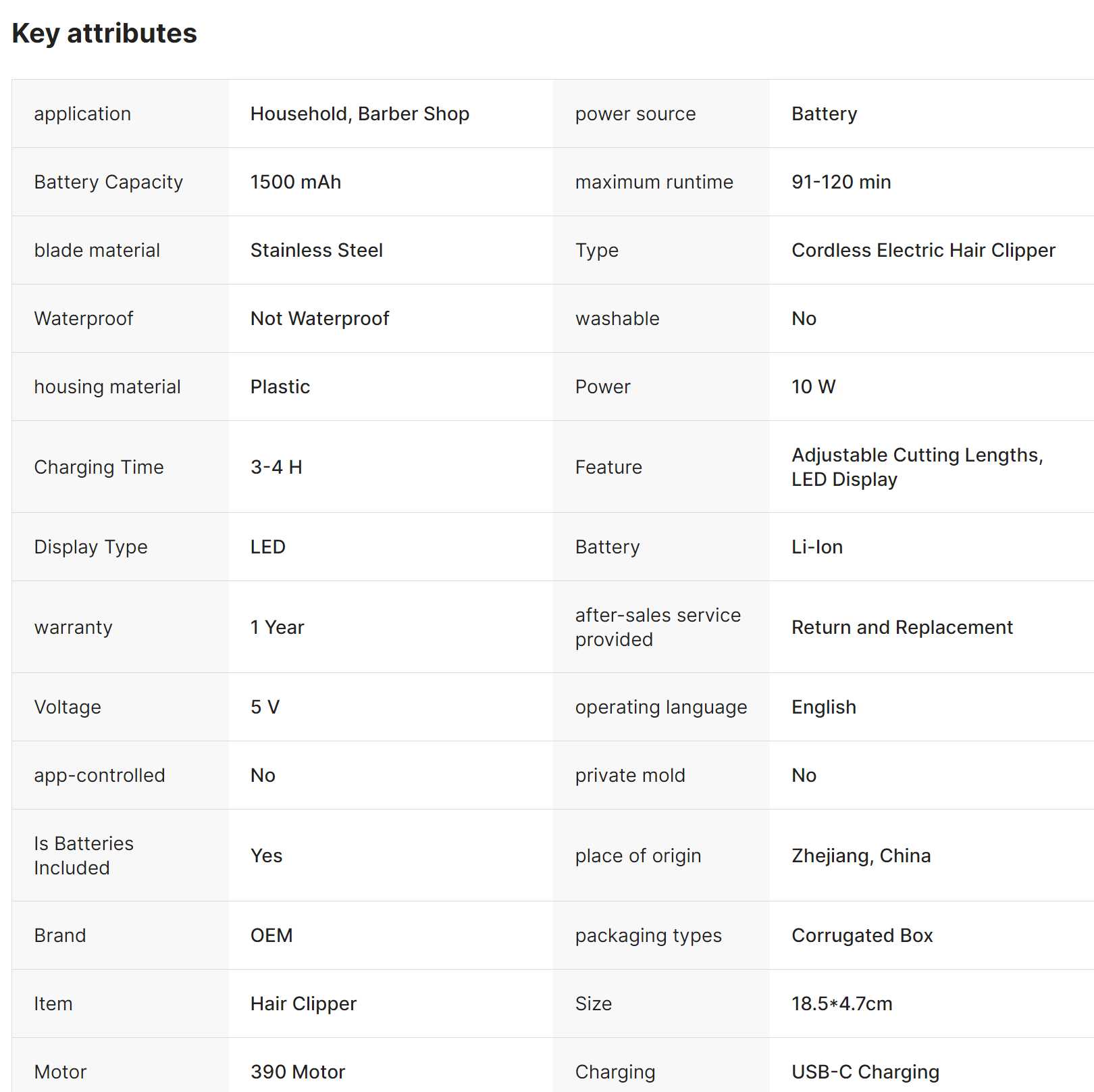 Personalized Rechargeable Electric Barber Clippers for Men Men’s Hair Trimmers Washable Electric Hair Clippers