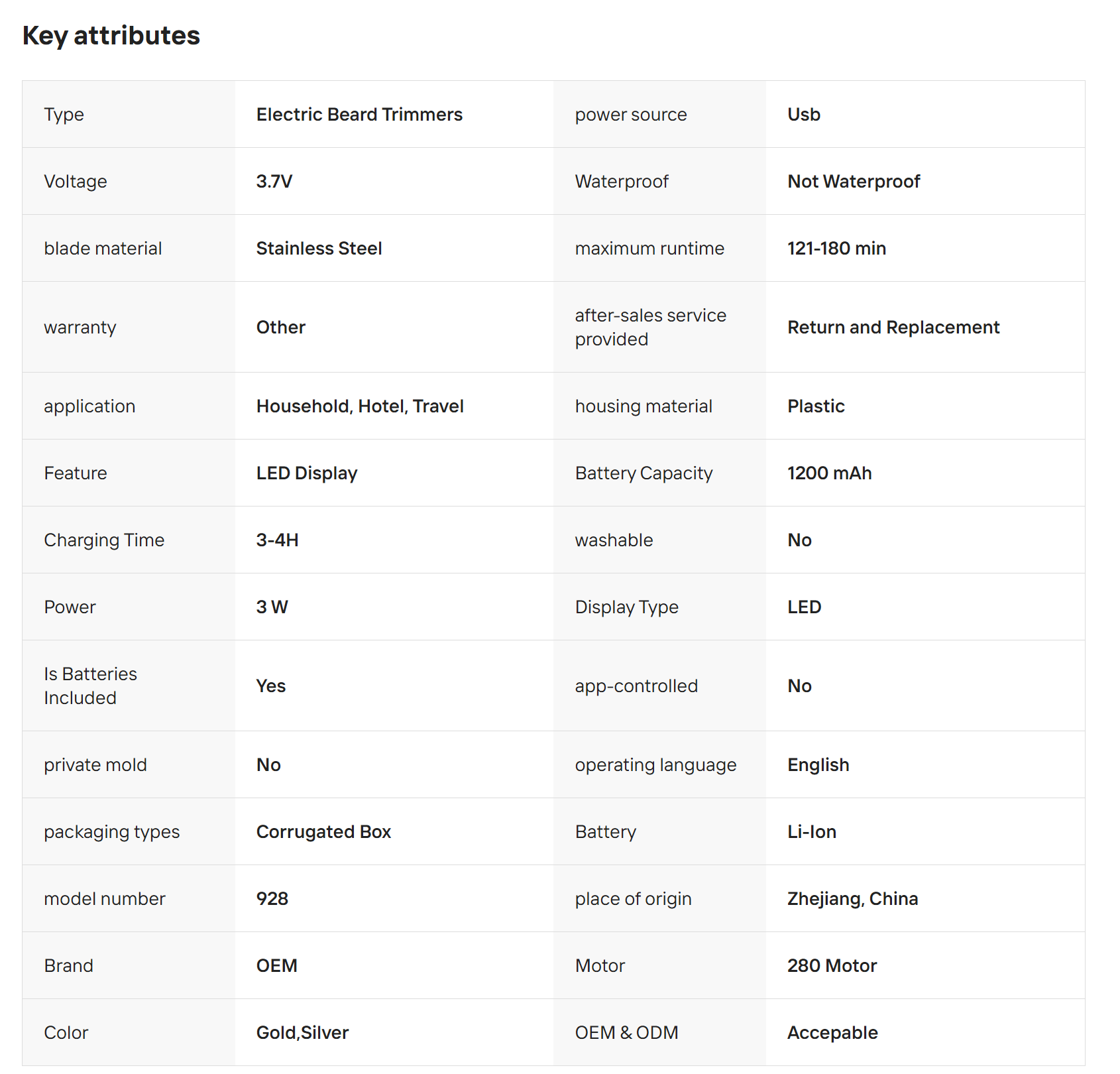 2000mAh Lithium Battery Professional Wholesale OEM Factory Quality USB Rechargeable Hair Salon Accessories Men's Beard Hair Clipper Trimmer SetQuality USB Rechargeable Barber Shop Accessories Men's Beard Hair Trimmer Set