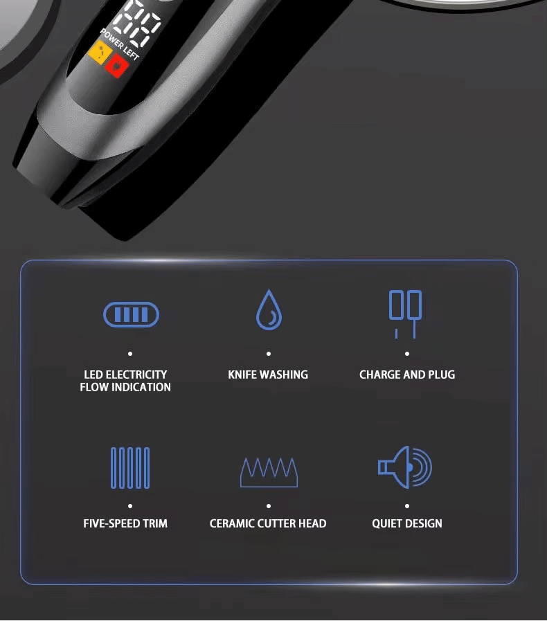 Professional Warranty Rechargeable Ceramic Cutting Machine for Men Low Noise LED Tondeuse Electric Hair Trimmers Clippers