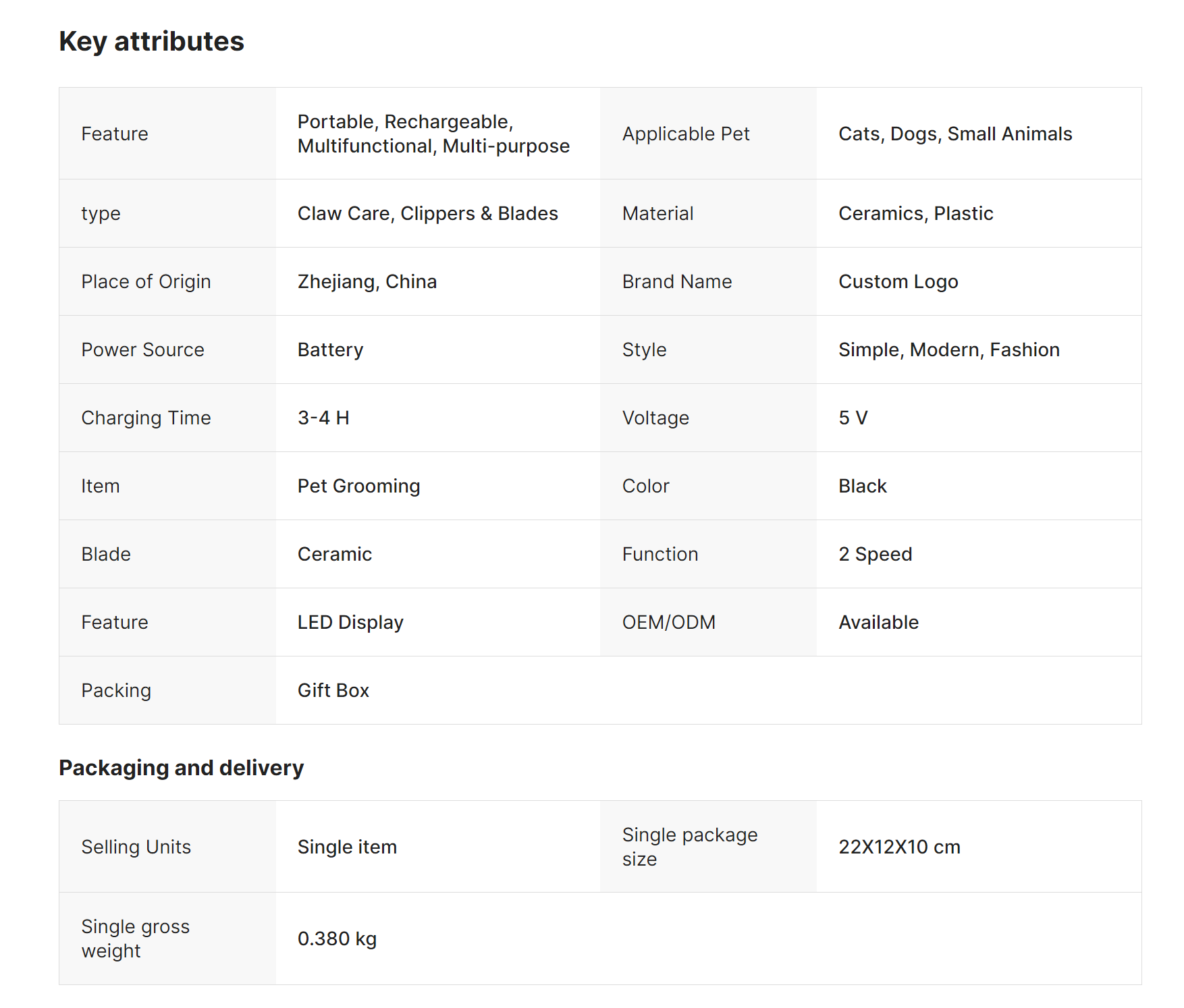 Custom Portable Low Noise Rechargeable Cordless Ceramic Blade Simple Cats Trimmer for Pet Grooming Electric Dog Hair Clipper