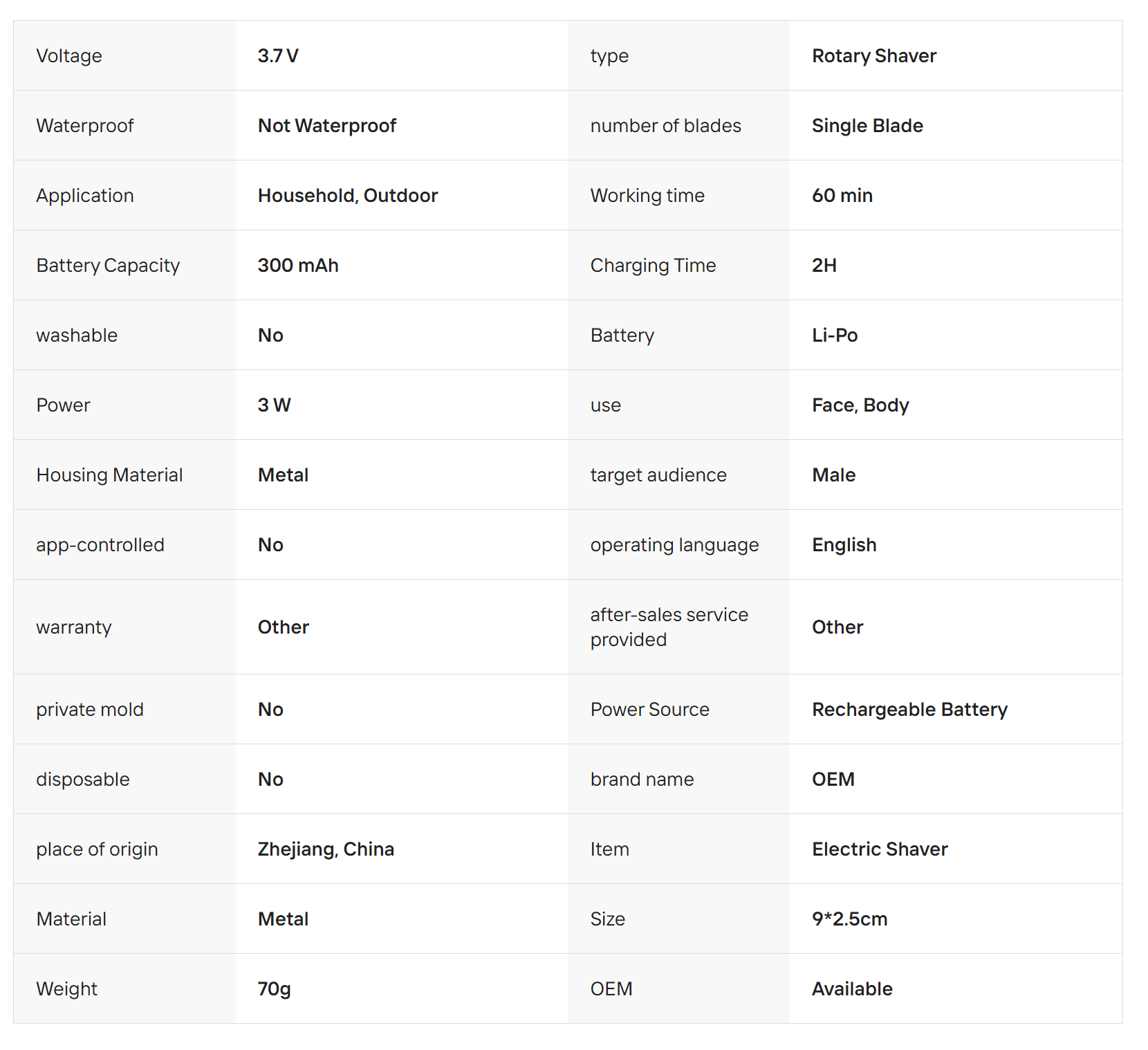 Portable Small Rechargeable Beard Trimming Machine for Men Single Blade Metal Body and Face Electric Shaver Men